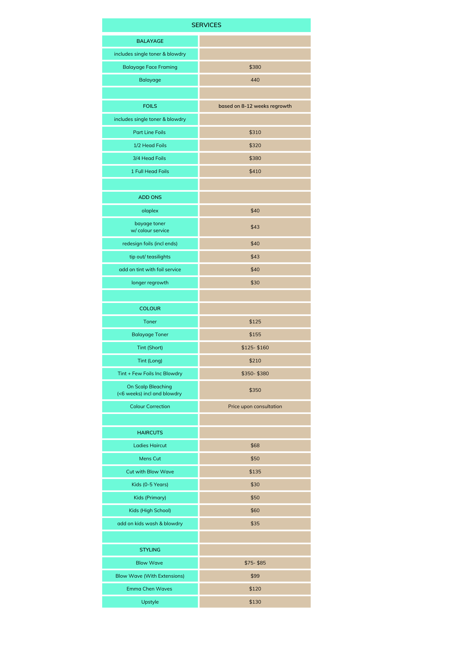 Please note that prices listed are to be used as a guideline and not to be considered as a quote. If you would like a more personalised quote please contact our team to schedule a complimentary consultation with one of our stylists.